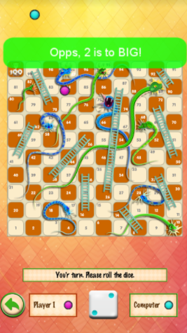 The game application is not satisfying because the player piece in the snake and ladder board is not moving as expected. For example, the piece on the board is not moving to the correct block on the board (see figure 6) and when the piece reaches the mouth of the snake, it did not come down to the tail (See figure 7).