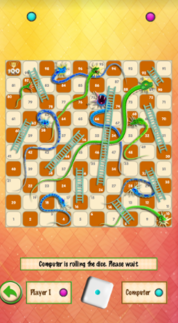 This game was designed for users to play snake and ladder through a computer. It provides three different ways the user can play snake and ladder which are against a computer, against another player offline and against another player online.