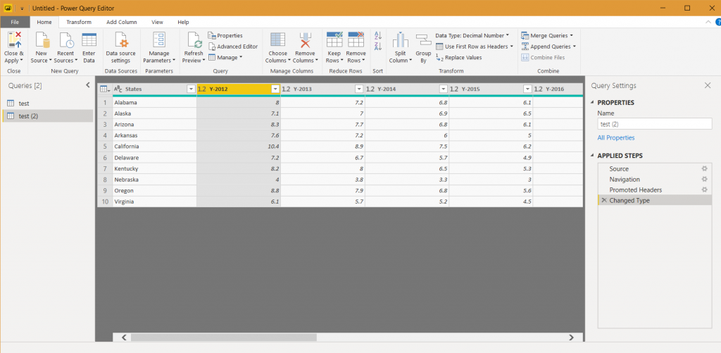Figure 1: Power BI can edit the dataset while loading them