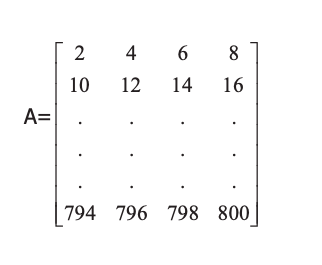 6. Write a MATLAB program and use “For-loop” command to generate Matrix A below. (3 p)