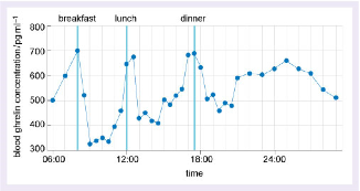 b. Using the information shown in Figure 1, briefly describe (i) the role of ghrelin in the feeling of hunger and (ii) how working the night shift may be contributing to Mark’s weight gain.
