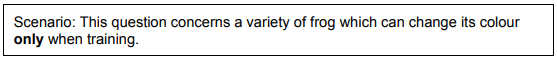(iii) Instances of TrainableFrog are unable to change their colour unless they are training – that is, unless the value of isTraining has been set to true. In order to implement this behaviour, a single method inherited from the Amphibian class (the direct superclass of Frog) should be overridden in the TrainableFrog class.