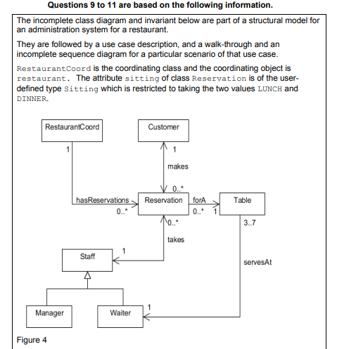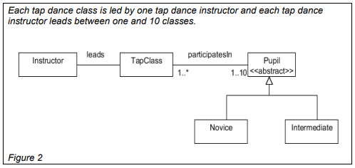Question 5 The following is an extract from a requirements document for a system for a tap dance school. The incomplete class diagram below forms part of a conceptual model for the system.