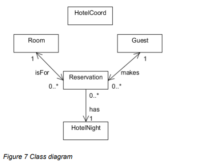 The following unfinished class diagram is a part of a structural model being developed for a hotel administration system.