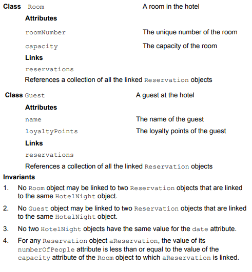 Note that the system deals with only a single hotel and each reservation is for only one night in one room.