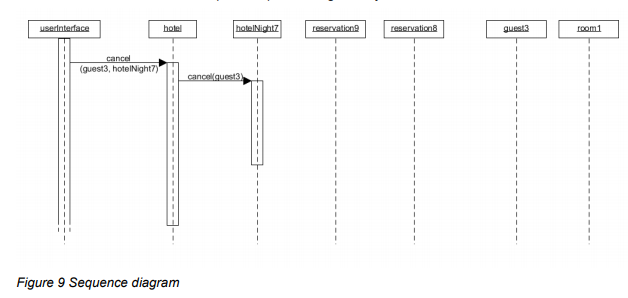 The user identifies a guest and a hotel night. If there is no reservation for the guest for the hotel night, the user is informed of this. Otherwise, the loyalty points of the guest are reduced by 1 and the reservation that is to be cancelled and all information about it is removed from the system.