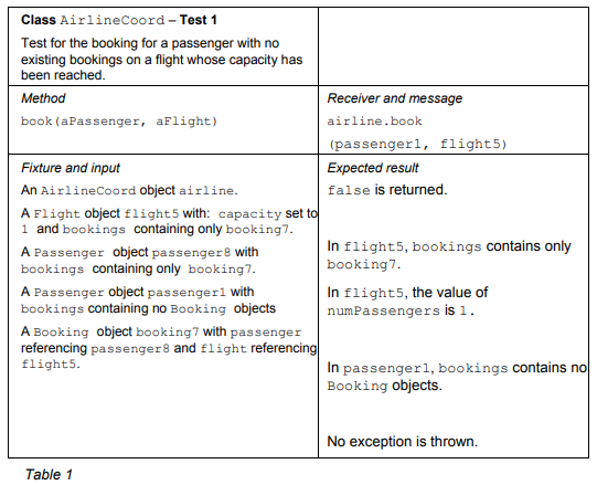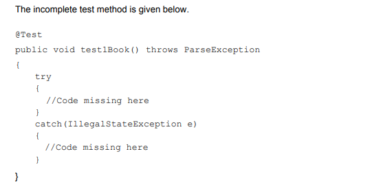 Read the table and the following notes and then complete the body, given below, of the JUnit test method test1Book corresponding to the test case.