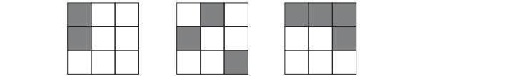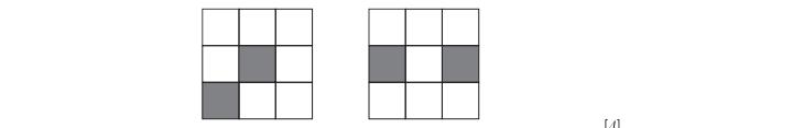Let X be the set of all 3×3 ‘chessboards’ in which each square is coloured either black or white. Some diferent elements of X are illustrated below