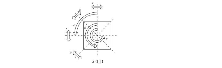 This question concerns the natural group action of S() on X. The elements of S() are the identity, rotations a, b, c and reflections r, s, t, u as shown below.