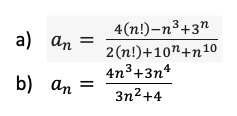 Determine whether or not each of the following sequences {an} converges, naming any result or rule that you use. If a sequence does converge, then find its limit