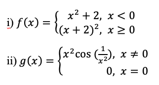 a) Determine whether each of the functions defined below is continuous at 0, naming any results or rules that you use