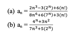 Determine whether each of the following sequences (an) converges, naming any result or rule that you use. If a sequence does converge, then find its limit