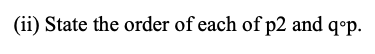 This question concerns the permutations p = (1 2 3 4) (5 6) and q = (1 3 5 6) in S6.