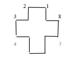 This question concerns the symmetry group G of the cross shown below, which has four identical arms. The vertices at the ends of the arms are labelled as shown.