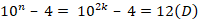 10n − 4 is divisible by 12 for all integers n ≥ 2 is true.