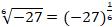 principal 6th root of −27 =