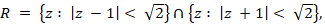 Let A = {z : 1 < |z − i| < 2} and B = {z : | Re z| ≤ 3, |Im z| ≤ 1}.