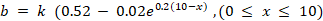 For town B, with a smaller population than town A, the number of shoppers, b, prepared to travel to the store if it were situated x km from A could be modelled by