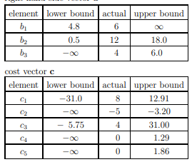 Ranges of values for which the optimal basis list remains optimal. right-hand-side vector b
