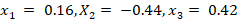 0.26x1 − 0.23x2 + 0.21x3 = 0.14
