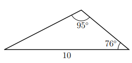 The triangle below (which is not drawn to scale) has angles of sizes and . The side opposite the angle of size has length 10.