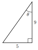 The two shorter sides of the right-angled triangle shown below (which is not drawn to scale) have lengths 9 and 5, respectively