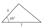 The triangle below (which is not drawn to scale) has two sides of lengths 4 and 7, and the angle between them is