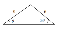 The triangle below (which is not drawn to scale) has two sides of lengths 9 and 6. The angle opposite the side of length 9 is