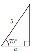 The right-angled triangle below (which is not drawn to scale) has an angle of size and a hypotenuse of length 5. What is the length, to one decimal place, of the side, labelled as a, adjacent to the angle of size 750 in the diagram?