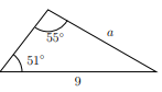 The triangle below (which is not drawn to scale) has angles of sizes and . The side opposite the angle of size 550 has length 9.