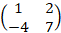 Which matrix represents the linear transformation that maps the points (1, 0) and (0, 1) to the points (5, 4) and (−7, 3), respectively?