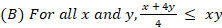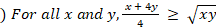 In each of the following statements, x and y represent positive real numbers. One of the statements is true, and the other is false.