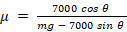 (c) Let the coefficient of static friction between the crate and the ground be μ. When the crate is on the point of slipping, the magnitude of the force in the rope is 7000 N. Use the expressions for the forces that you obtained in part (b) to show that
