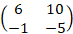Which matrix represents the linear transformation that maps the points (1, 0) and (0, 1) to the points (3, 2) and (−6, 5), respectively?