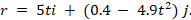 r = sin(2t)i − 5tj.