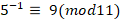 The multiplicative inverse of 9 modulo 11 = 5