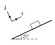 (b) Find expressions for the component forms of the three forces, in terms of the mass m (in kg) of the block and any unknown magnitude(s) where appropriate. Take the Cartesian unit vectors i and j to point parallel and perpendicular to the slope, respectively, in the directions shown in the diagram above.