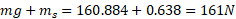 The normal reaction acts vertically upwards with a magnitude of 160N.