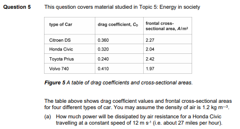 (b) If the speed of the Honda Civic increases to 36 m s-1 (i.e. about 80 miles per hour), by what factor will the power dissipated by air resistance increase?