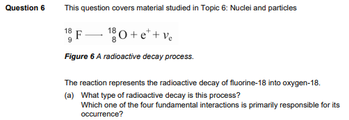(c) What type of boson is created when a quark changes flavour in this process? Name the two particles emitted when the boson decays