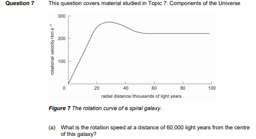 (b) How many million years does it take a star situated 60,000 light years from the centre of the galaxy to complete one circular orbit of the galaxy?
