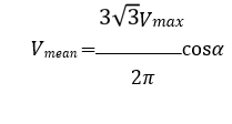 Show that the mean load voltage (Vmean) of the 3-phase fully controlled bridge converter in terms of the peak source voltage (Vmax) and firing angle (?) is: