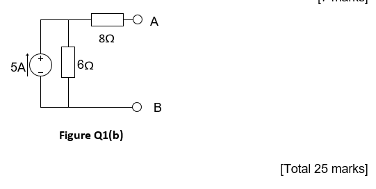 (b) Determine the Thevenin Equivalent circuit for the circuit in Figure Q1(b) that contains a current source and two resistors. Draw the appropriate circuit diagram for each stage.