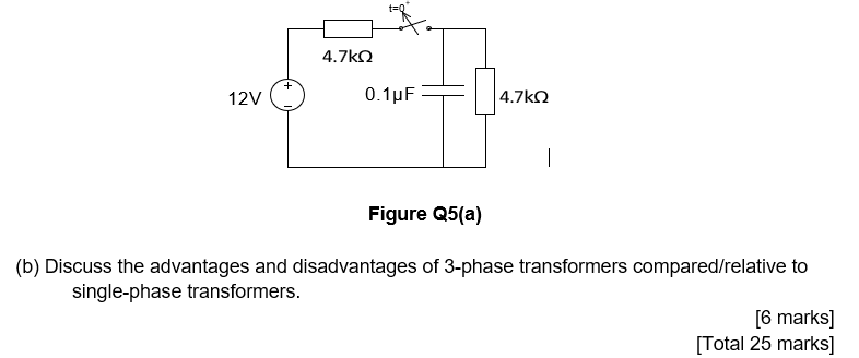 (a) In the circuit shown in figure Q5(a) the switch has been closed for a long time (all transients have decayed) and the capacitor is charged up. At time t=0+ the switch is OPENED and the capacitor discharges.