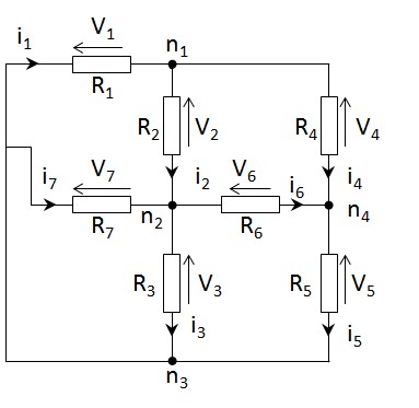 (i) In Figure Q1(a), if V1=3V, V2=9V, V5=5V, determine the voltages V3, V4, V6 and V7 by applying Kirchhoff’s Voltage Law (KVL).