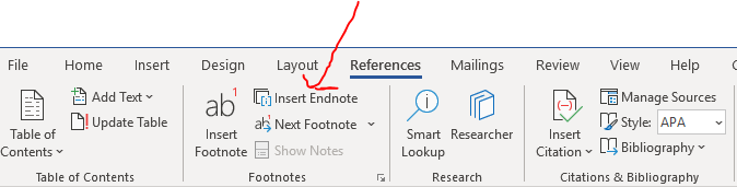 It refers to a description, reference, or comment placed at the end of the research, article, chapter or book. It is similar to footnotes, in that, it provides explanatory comments that would interrupt the main text’s flow, and it cites a source.