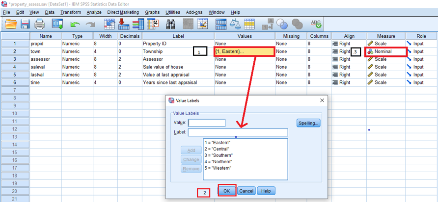 Then Go to the Variable View in the SPSS Widow code the measure and Values of Township as Shown in figure 1.