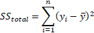 SS is short for “sum of squares” and it is used to represent variation. The variance of the target variable comprises of that of the model (explainable variance) and that of the residuals (unexplainable variance). The total SS is the total variation of the target variable around its mean. it is given by: