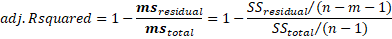 Adj R-squared: Since the addition of more and more predictors tend to increase the R-squared, Adj R-squared tells us how much of the variation of the dependent variable is determined by the addition of the independent variables. Adj R-squared is the R-squared controlled for by the number of predictors. It is given by: