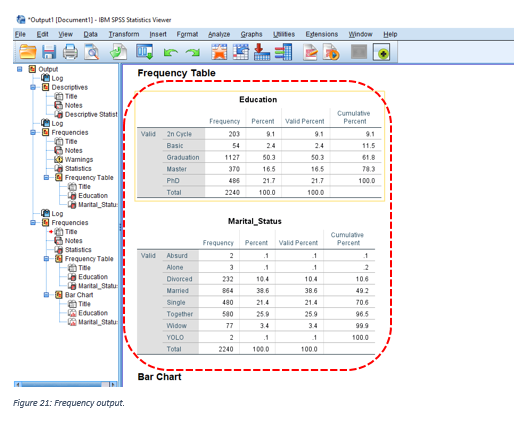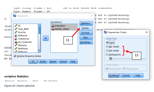 Then suitable charts for the visualization may be selected by clicking “Charts…” as shown in 11. When you click “Continue” then “Ok” your results should be ready in the output window (see Figure 21).